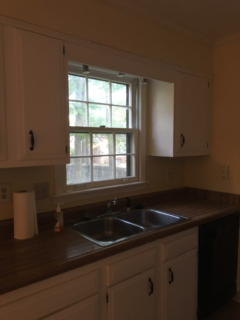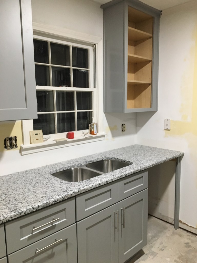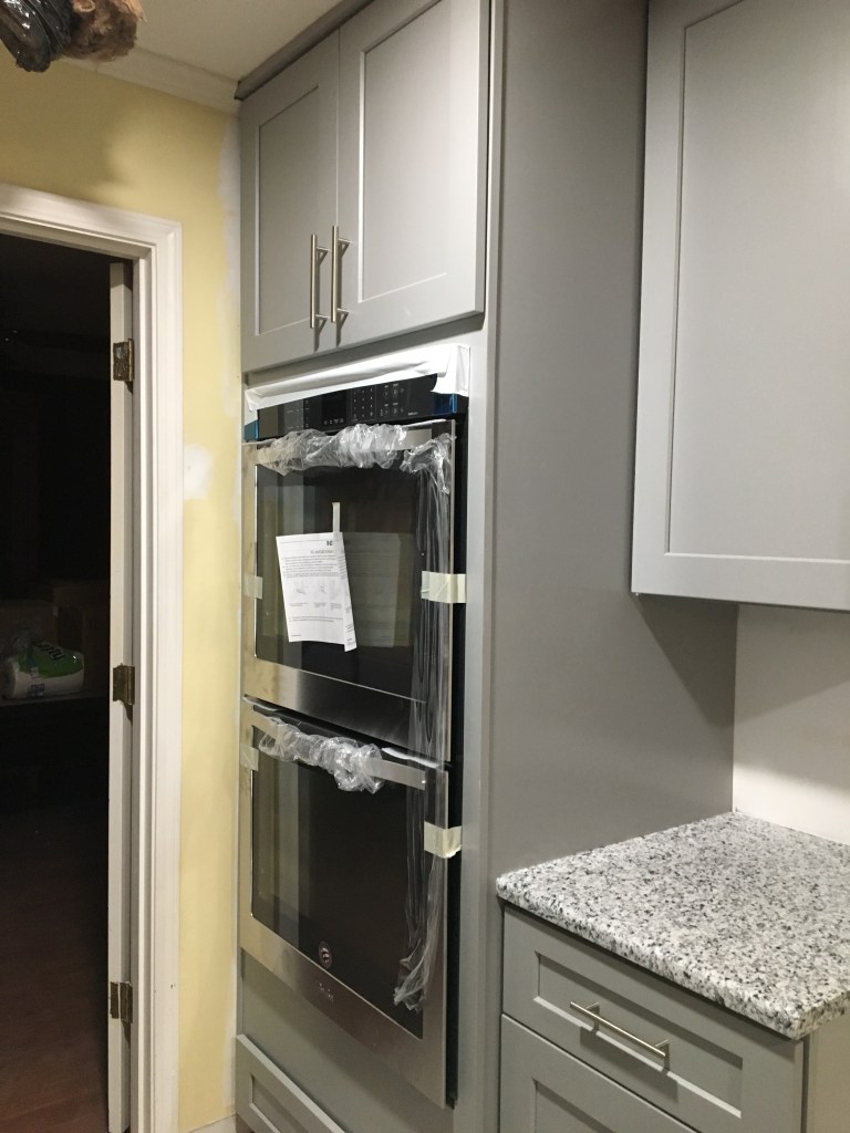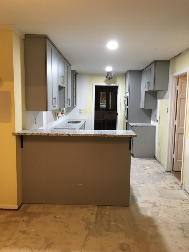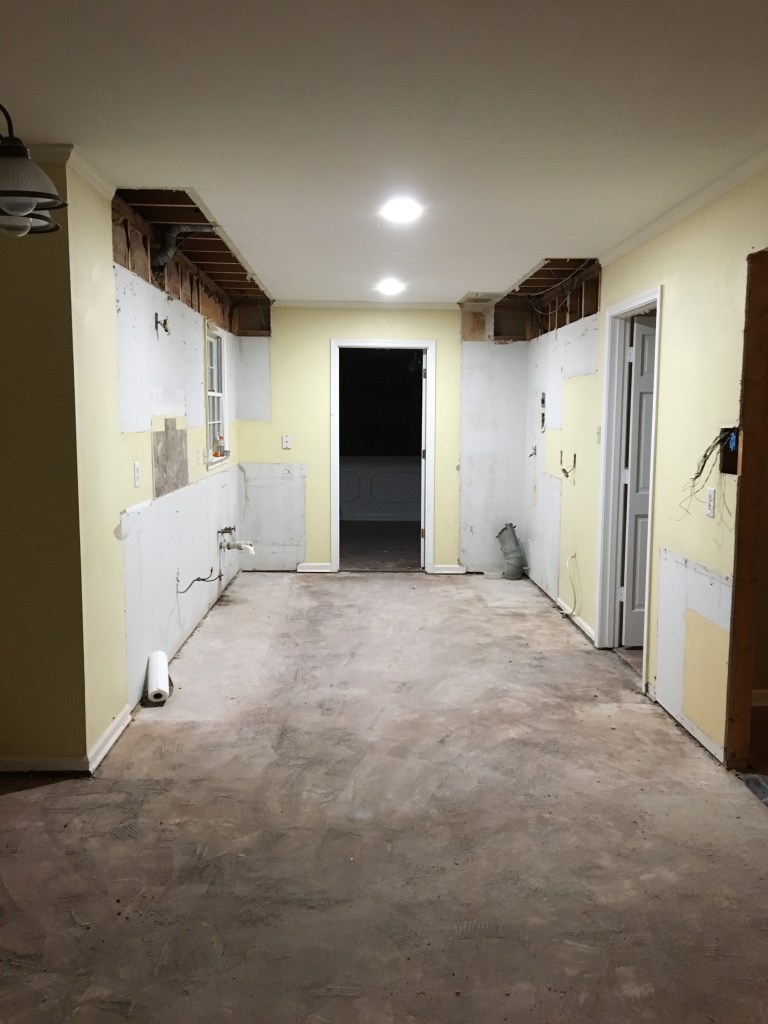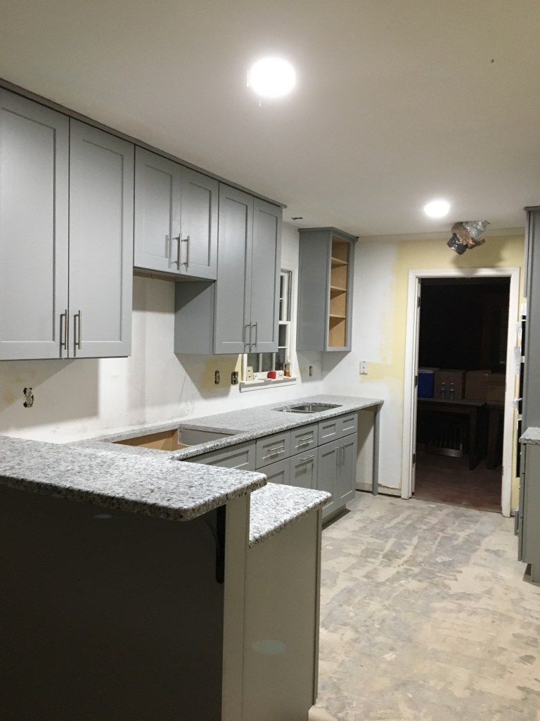 Everything happened pretty quickly. We closed on our previous house on a Tuesday. We closed on our new house on that Wednesday. The demolition crew came to start removing our kitchen and moving walls for us on that Thursday. And by that Friday afternoon we had to be completely out of our previous home. We did not want to live in a home with no kitchen and tons of construction dust so we moved our furniture and whatnot into our new home as far away from the construction as possible and we went and stayed with my in-laws. The previous owner of our home was amazing. He had let us come in before closing and get measurements and whatnot. So we had everything ready on go. In 2.5 weeks we were sleeping in our new home. Our cooktop had been delayed in shipping so we didn’t have one of those at the time, but we were so excited to be in our new home that we moved in anyway.