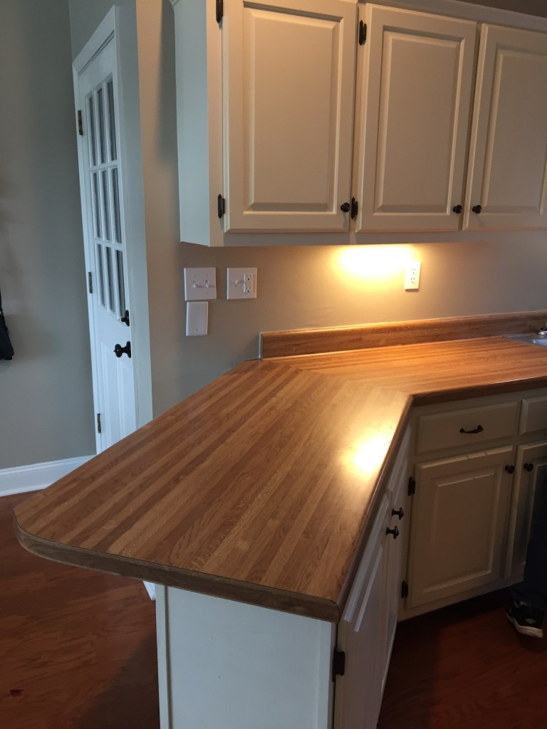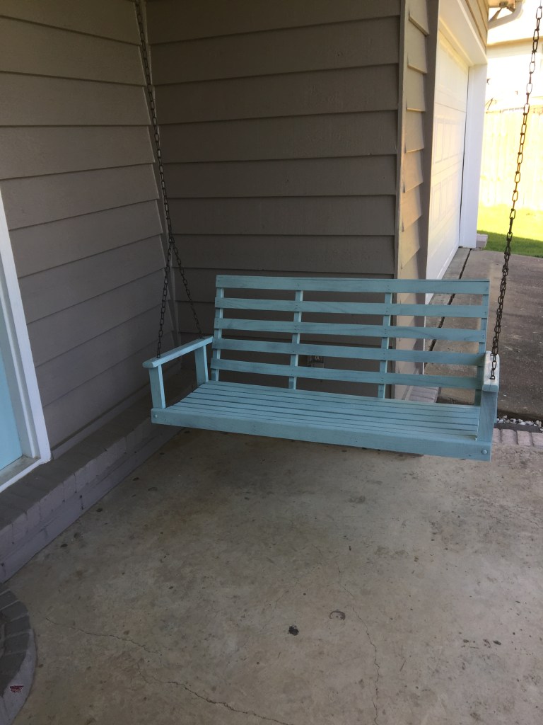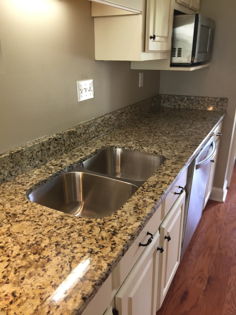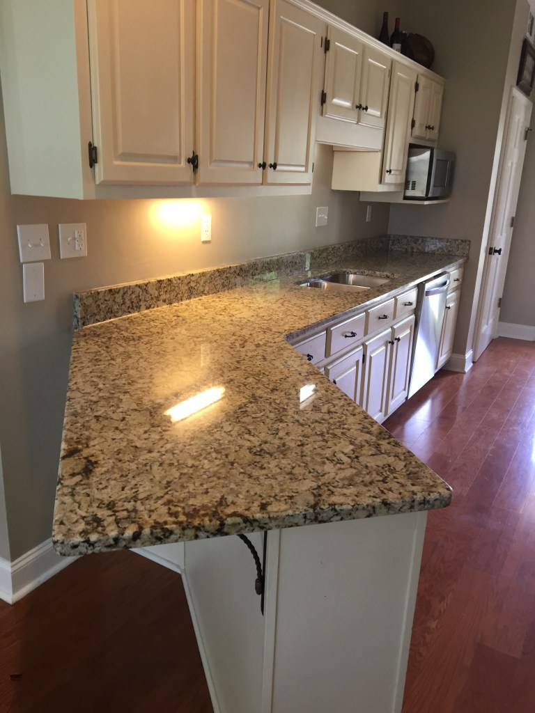 Other than the 2 stories area we painted all of the rooms as well. We finished up smoothing ceilings, painting the rooms, and had even painted the front doors and porch swing when a house 2 doors down from us went up for sale. I, being my nosey self, looked the house up online and was shocked by how much it was listed for. Our house was larger and I hadn’t thought we would be able to sell our home for that price. I reached out to a friend of mine who had recently become a realtor. She and a colleague came over to our home and told us what they would list our home for. They also told us what projects they would suggest doing to get the most money possible for our home. And then all of a sudden things were flying. We had our kitchen counters changed out to granite, replaced our original 1980s cooktop and vent hood, and in the master bathroom we had the carpet – yep carpet – removed and replaced with tile, and painted the vanity in there as well. We then quickly put our house on the market and it was under contract in a weekend! Chris and I were on a high. A few projects had really made our home look amazing.