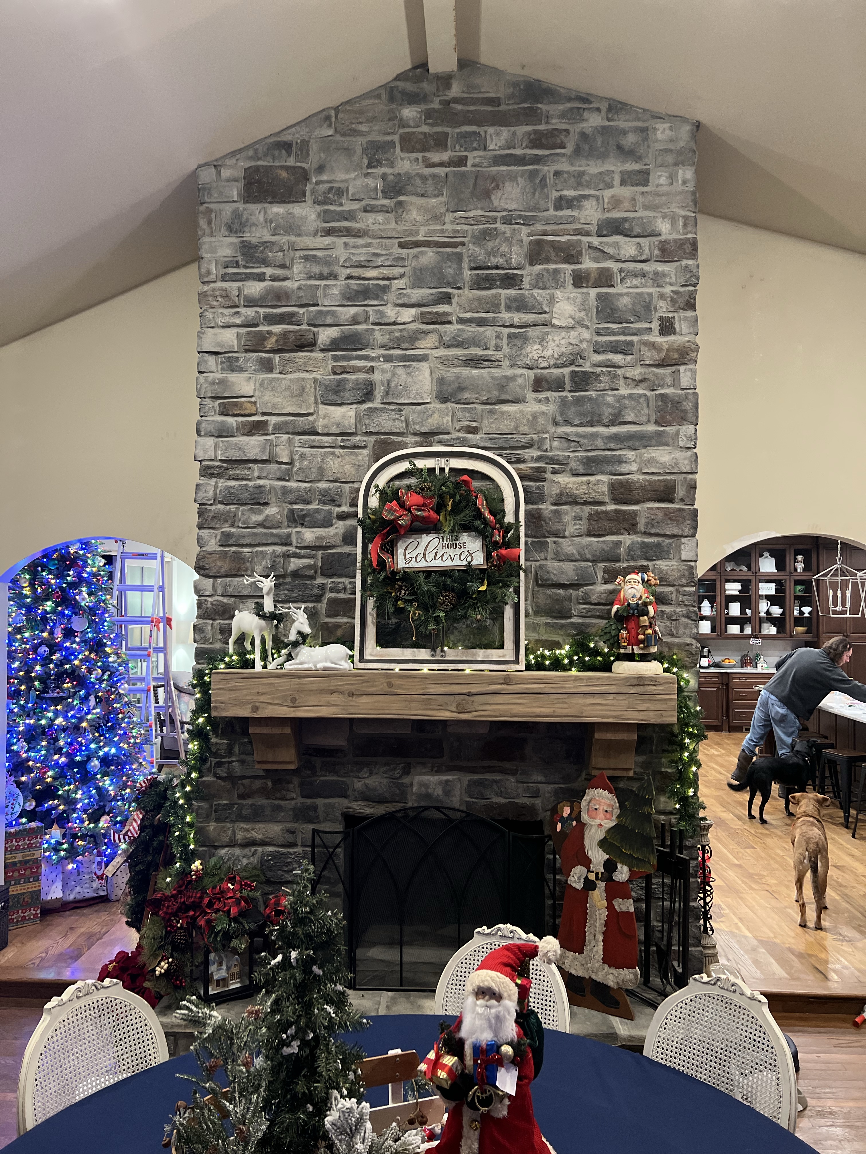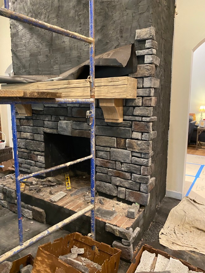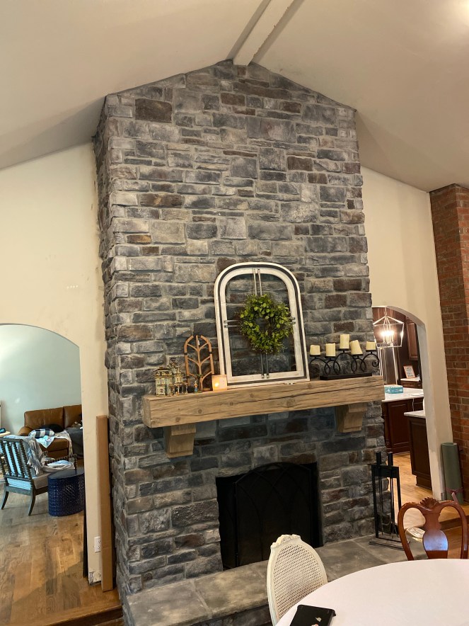 Been there and done this before. At my last house it was truly one of my favorite places to decorate once I got it covered in stone. I was constantly changing the decorations to fit the season. My husband and I agreed that this house needed the fireplace stone to be done this year. Knowing I wanted it done before my seasonal decorations went up, summer was the right time to start. We spent the beginning of this project looking at all the “looks” we wanted this fireplace to have. Knowing we had a great experience with Memphis Stone and Stucco last time, we knew that whatever “look” we chose we would still need to find that look there. My husband and I have very similar taste so agreeing on a look was fairly simple, and after deciding off to the store we went. After speaking with our sales rep, they came and did the measuring and ordering. The worst part was the wait for it to come in and be installed. In the meantime, I also reached out to Wade Burris, owner of Architectural Timber Works, who also did our last fireplace mantle. We truly love his work and knew we would use him again this time around as well. We got him out to measure and fit our two fireplaces with two giant new mantles. If you got a chance to head to the mid south home show you saw some of his work with the beams he put in. Since our last house, everyone that I know who has put in a new mantle has used Wade and loved his work. Last step was for my favorite local business man to put the stove in. Shout out to Desoto chimney owner Bill Beasely, who came and got me all set for what we in the south call cold weather